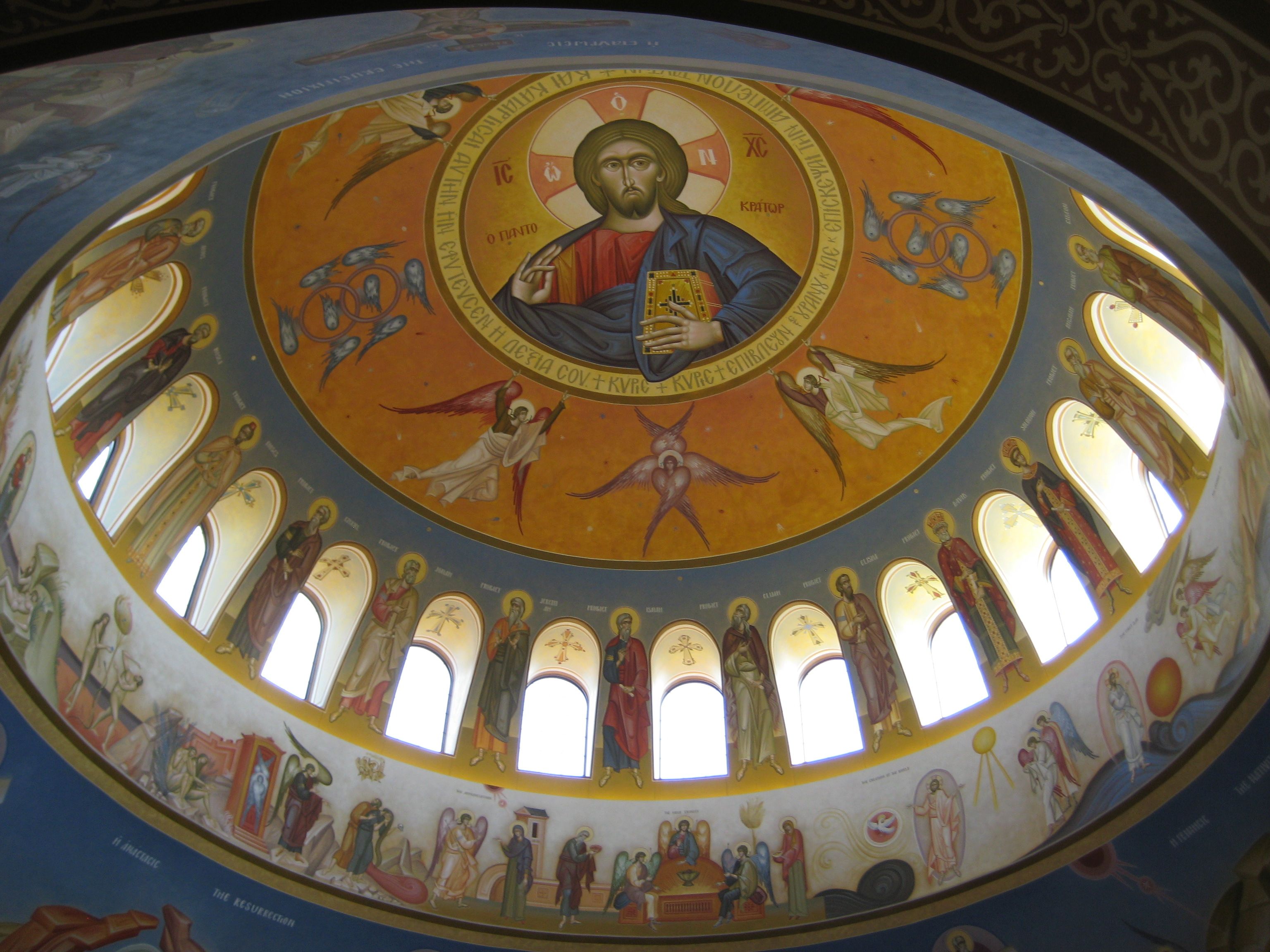 The lemonade-from-lemons that I’m trying to make from that is chanting at Holy Trinity Greek Orthodox Church on Holy Apostles’ off-Sundays; that’s been harder, because while they do Orthros, it starts at 8:15, so I’ve got to leave here around 6:45am. There are a couple of other couples/families in our peer group who are also driving up there semi-regularly, so how we’re trying to work it for now is I go up for Orthros, while Megan and Theodore come up with one of the other families. Holy Trinity has also been very welcoming to us, and their protopsaltis has been extraordinarily gracious in letting me help, given the irregular basis that I’m there. They’ve also just completed the first major stage of frescoing their new building; iconographer Dr. George Kordis and his team were in residence for a few weeks, painting the dome, the cornices, and the sanctuary. When we were there last he had just finished, and he gave a fascinating talk about the work they had done; the talk alone was worth the drive for the morning.