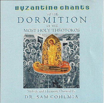 In the meantime, Dr. Sam Cohlmia, protopsaltis of the Antiochian Diocese of Wichita and the Midwest as well as St. George Cathedral in Wichita, was kind enough to send me a review copy of his new recording, Byzantine Chants to the Dormition of the Most Holy Theotokos. It contains many of the festal hymns for the Feast of the Dormition, with Dr. Cohlmia as solo cantor throughout (and providing his own isokratima via the miracle of modern recording technology).